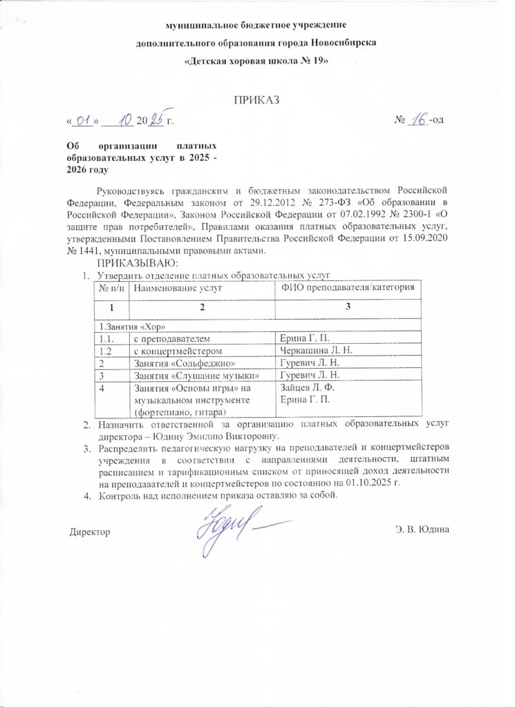 Постановление об установлении тарифов на платные образ услуги ДХШ 19
