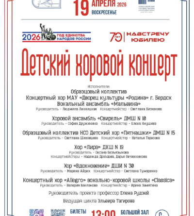 Читайте далееВ свой юбилейный 15-й сезон цикл концертов «Детский хоровой» продолжает радовать публику! В этот день на сцене Большого зала Новосибирской