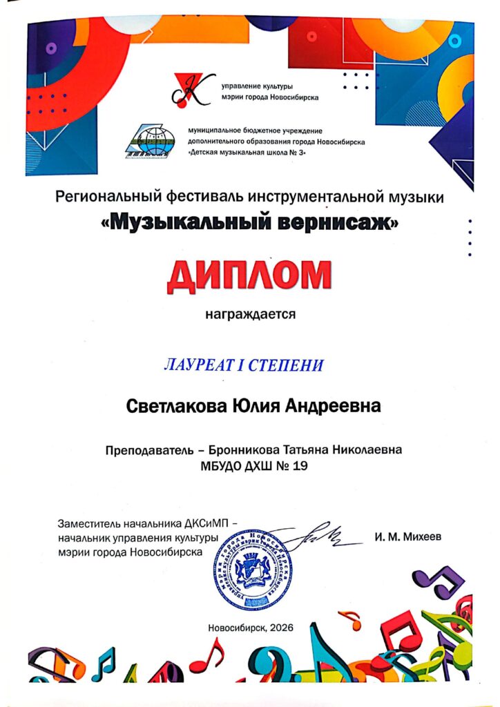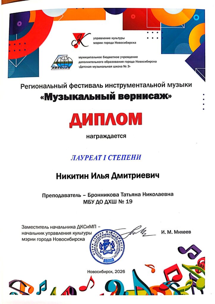 В номинации «фортепиано» успешно выступили учащиеся нашей школы . учащиеся 7 класса Светлакова Юля и Нормантович Арина и учащийся 8 класса Никитин Илья (преподаватель Бронникова Т. Н.) были удостоены звания лауреата I степени.