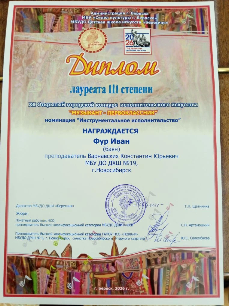 Обучающийся нашей школы Фур Иван вместе со своим руководителем Варнавских Константином Юрьевичем, первый раз принимал участие в этом конкурсе. Повышая свое мастерство ежедневными занятиями, в этом году Иван показал на конкурсе очень хорошие результаты: